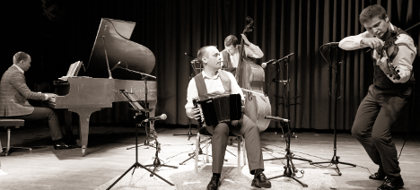 Tango en Vivo på Stockholm Tangofestival 2019! Festivalen gästas i år av den spännande ryska tango-orkestern Tango en Vivo med Ivan Talanin (bandoneon), Anton Semke(fiol), Dmitriy Kiselev(piano) och Gleb Izotov(bas). De besökte oss på vårt 30-års jubileum och vi är glada att få dem tillbaka! Läs mer på deras hemsida https://www.ivantalanin.com/The exciting Russian Tango Orchestra Tango en Vivo will join us during the festival: Ivan Talanin (bandoneon), Anton Semke(violin), Dmitriy Kiselev(piano) and Gleb Izotov(bass). They had a much appreciated performance when Tango Norte celebrated its 30-year birthday and we are really happy to have them back! Read more at their home page https://www.ivantalanin.com/ |