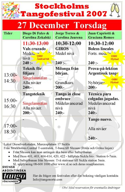 Stockholm Tango Festival 2007 27 December – 31 December